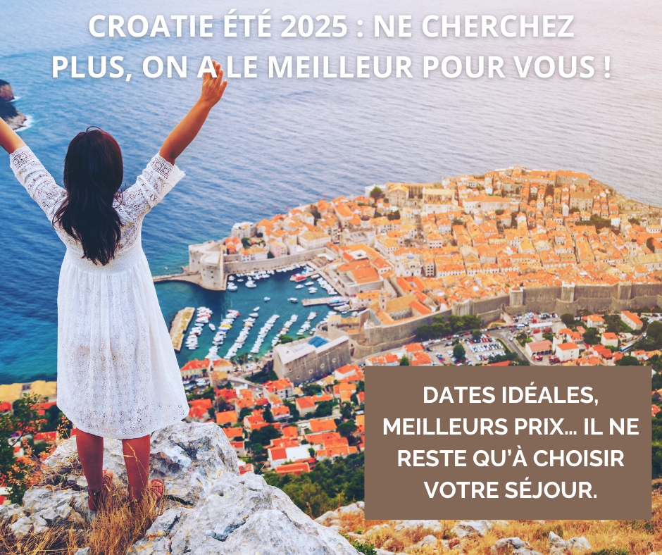 Imaginez-vous sur les terrasses ensoleillées de Split, dans les criques turquoise de Hvar, ou sur les remparts de Dubrovnik baignés de lumière...Pour vos vacances d'été 2025, nous avons sélectionné les meilleurs séjours et bloqué des vols aux dates les plus demandées. Tout est prêt pour que vous puissiez partir l'esprit libre et vivre le meilleur de la Croatie.